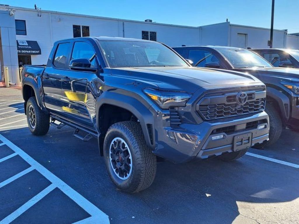 2025 Toyota Tacoma TRD Off-Road TRD Off-Road 4WD. 2.4L 4-Cylinder 4WD 6-Speed Manual Underground Dealer Discount of $2,000 off MSRP TRD Off Road Upgrade Package (120V/400W AC Power Inverter, 8-Way Power Driver & Passenger Seat Adjusters, Deck Storage Box, Heated Front Seats, Heated Leather-Trimmed Steering Wheel, HomeLink Universal Transceiver, Integrated Trailer Brake Controller, JBL Premium Audio, Low Auxiliary (30A) Switches, Power Horizontal Rear Window, Pre-Wire Accommodation (Bed Power Port), and Smart Key w/Digital Key Technology), 4WD, 4-Wheel Disc Brakes, 4.300 Axle Ratio, 6 Speakers, ABS brakes, Air Conditioning, Alloy wheels, AM/FM radio: SiriusXM, Anti-whiplash front head restraints, Apple CarPlay/Android Auto, Auto High-beam Headlights, Auto-dimming Rear-View mirror, Automatic temperature control, Black Badge Overlay (TMS), Black Chrome Exhaust Tip (TMS), Black Tailgate Insert (TMS), Brake assist, Bumpers: body-color, Cross Model Suspension Kit w/2.5" Lift (TMS), Driver door bin, Driver vanity mirror, Dual front impact airbags, Dual front side impact airbags, Electronic Stability Control, Emergency communication system: Safety Connect (1-year trial), Exterior Parking Camera Rear, Fabric Seat Trim, Four wheel independent suspension, Front & Rear Stabilizer, Front anti-roll bar, Front Bucket Seats, Front Center Armrest, Front fog lights, Front reading lights, Fully automatic headlights, Heated door mirrors, Illuminated entry, Knee airbag, Leather Shift Knob, Leather steering wheel, Low tire pressure warning, Mudguards (TMS), Occupant sensing airbag, Outside temperature display, Overhead airbag, Overhead console, Panic alarm, Passenger door bin, Passenger vanity mirror, Power door mirrors, Power steering, Power windows, Predator Step (TMS), Radio: 8" Toyota Audio Multimedia, Rear step bumper, Rear window defroster, Remote keyless entry, Security system, Speed control, Speed-sensing steering, Split folding rear seat, Spray-On Bed Liner (TMS), Steering wheel mounted audio controls, Tachometer, Telescoping steering wheel, Tilt steering wheel, Traction control, Trip computer, Turn signal indicator mirrors, Variably intermittent wipers, and Wheels: 17" TRD Off-Road Alloy. *Every Internet Price includes currently applicable incentives. Some incentives may require financing through the manufacturer's finance company on approved credit. Some manufacturer incentives may not be combined with special APR. You may also qualify for additional manufacturer incentive programs (E.G., College graduate, owner loyalty, and military). See dealer for more details about these programs. Your additional costs are sales tax, tag and title fees for the state in which the vehicle will be registered, any dealer-installed options and a $995 dealer processing fee (Virginia). Prices are subject to change, and prior sales are excluded. While every reasonable effort is made to ensure the accuracy of this information, we are not responsible for any errors or omissions contained on these pages. Please verify any information in question with the dealer.