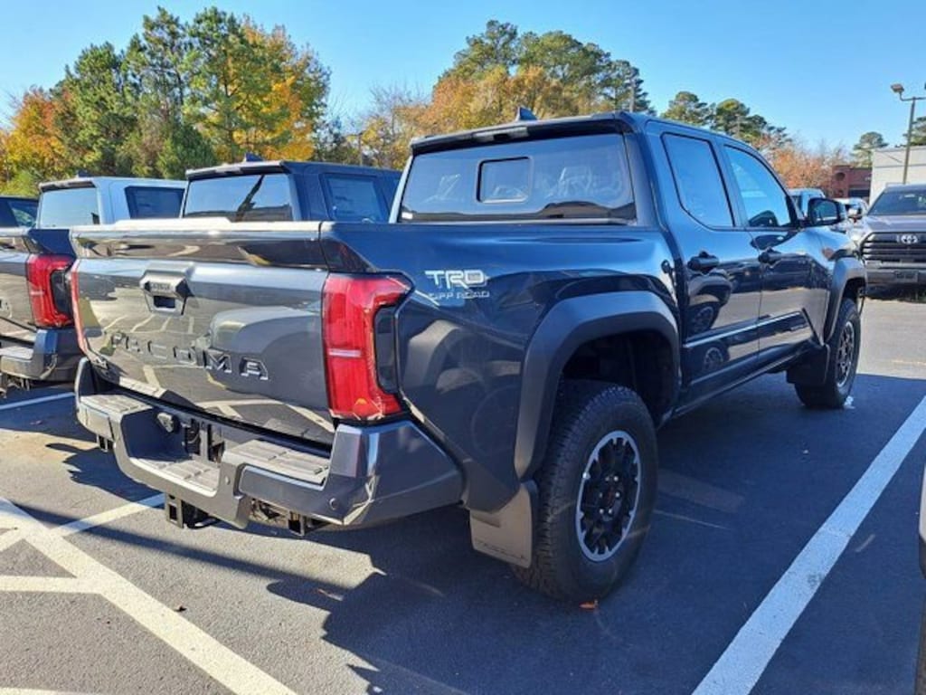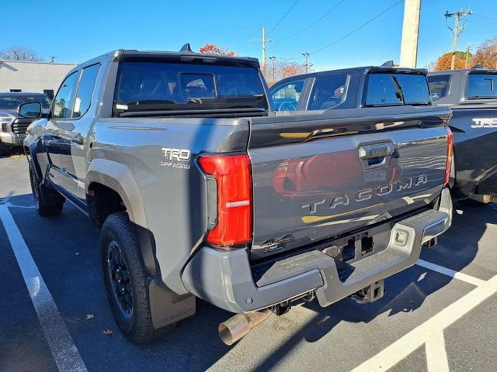2025 Toyota Tacoma TRD Off-Road TRD Off-Road 4WD. 2.4L 4-Cylinder 4WD 6-Speed Manual Underground Dealer Discount of $3,121 off MSRP TRD Off Road Upgrade Package (120V/400W AC Power Inverter, 8-Way Power Driver & Passenger Seat Adjusters, Deck Storage Box, Heated Front Seats, Heated Leather-Trimmed Steering Wheel, HomeLink Universal Transceiver, Integrated Trailer Brake Controller, JBL Premium Audio, Low Auxiliary (30A) Switches, Power Horizontal Rear Window, Pre-Wire Accommodation (Bed Power Port), and Smart Key w/Digital Key Technology), 4WD, 4-Wheel Disc Brakes, 4.300 Axle Ratio, 6 Speakers, ABS brakes, Air Conditioning, Alloy wheels, AM/FM radio: SiriusXM, Anti-whiplash front head restraints, Apple CarPlay/Android Auto, Auto High-beam Headlights, Auto-dimming Rear-View mirror, Automatic temperature control, Brake assist, Bumpers: body-color, Driver door bin, Driver vanity mirror, Dual front impact airbags, Dual front side impact airbags, Electronic Stability Control, Emergency communication system: Safety Connect (1-year trial), Exterior Parking Camera Rear, Fabric Seat Trim, Four wheel independent suspension, Front & Rear Stabilizer, Front anti-roll bar, Front Bucket Seats, Front Center Armrest, Front fog lights, Front reading lights, Fully automatic headlights, Heated door mirrors, Illuminated entry, Knee airbag, Leather Shift Knob, Leather steering wheel, Low tire pressure warning, Mudguards (TMS), Occupant sensing airbag, Outside temperature display, Overhead airbag, Overhead console, Panic alarm, Passenger door bin, Passenger vanity mirror, Power door mirrors, Power steering, Power windows, Radio: 8" Toyota Audio Multimedia, Rear step bumper, Rear window defroster, Remote keyless entry, Security system, Speed control, Speed-sensing steering, Split folding rear seat, Spray-On Bed Liner (TMS), Steering wheel mounted audio controls, Tachometer, Telescoping steering wheel, Tilt steering wheel, Traction control, Trip computer, Turn signal indicator mirrors, Variably intermittent wipers, and Wheels: 17" TRD Off-Road Alloy. *Every Internet Price includes currently applicable incentives. Some incentives may require financing through the manufacturer's finance company on approved credit. Some manufacturer incentives may not be combined with special APR. You may also qualify for additional manufacturer incentive programs (E.G., College graduate, owner loyalty, and military). See dealer for more details about these programs. Your additional costs are sales tax, tag and title fees for the state in which the vehicle will be registered, any dealer-installed options and a $995 dealer processing fee (Virginia). Prices are subject to change, and prior sales are excluded. While every reasonable effort is made to ensure the accuracy of this information, we are not responsible for any errors or omissions contained on these pages. Please verify any information in question with the dealer.