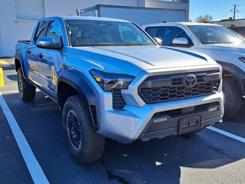 2025 Toyota Tacoma TRD Off-Road TRD Off-Road 4WD. 2.4L 4-Cylinder 4WD 8-Speed Automatic Celestial Silver Dealer Discount of $2,669 off MSRP 4WD, 3.583 Axle Ratio, 4-Wheel Disc Brakes, 6 Speakers, ABS brakes, Air Conditioning, All Weather Floor Liners (TMS), Alloy wheels, AM/FM radio: SiriusXM, Anti-whiplash front head restraints, Apple CarPlay/Android Auto, Auto High-beam Headlights, Auto-dimming Rear-View mirror, Automatic temperature control, Black Badge Overlay (TMS), Black Chrome Exhaust Tip (TMS), Black Tailgate Insert (TMS), Brake assist, Bumpers: body-color, Door Panel Scuff Protector (TMS), Driver door bin, Driver vanity mirror, Dual front impact airbags, Dual front side impact airbags, Electronic Stability Control, Emergency communication system: Safety Connect (1-year trial), Exterior Parking Camera Rear, Fabric Seat Trim, Four wheel independent suspension, Front anti-roll bar, Front Bucket Seats, Front Center Armrest, Front fog lights, Front reading lights, Fully automatic headlights, Heated door mirrors, Heated Seats, Illuminated entry, JBL Premium Audio, Knee airbag, Leather Shift Knob, Leather steering wheel, Low tire pressure warning, Occupant sensing airbag, Outside temperature display, Overhead airbag, Overhead console, Panic alarm, Passenger door bin, Passenger vanity mirror, Power door mirrors, Power steering, Power windows, Radio: 8" Toyota Audio Multimedia, Rear step bumper, Rear window defroster, Remote keyless entry, Security system, SofTex Seat Trim, Speed control, Speed-sensing steering, Split folding rear seat, Spray-On Bed Liner (TMS), Steering wheel mounted audio controls, Tachometer, Telescoping steering wheel, Tilt steering wheel, Traction control, Trip computer, Turn signal indicator mirrors, Variably intermittent wipers, and Wheels: 17" TRD Off-Road Alloy. *Every Internet Price includes currently applicable incentives. Some incentives may require financing through the manufacturer's finance company on approved credit. Some manufacturer incentives may not be combined with special APR. You may also qualify for additional manufacturer incentive programs (E.G., College graduate, owner loyalty, and military). See dealer for more details about these programs. Your additional costs are sales tax, tag and title fees for the state in which the vehicle will be registered, any dealer-installed options and a $995 dealer processing fee (Virginia). Prices are subject to change, and prior sales are excluded. While every reasonable effort is made to ensure the accuracy of this information, we are not responsible for any errors or omissions contained on these pages. Please verify any information in question with the dealer.