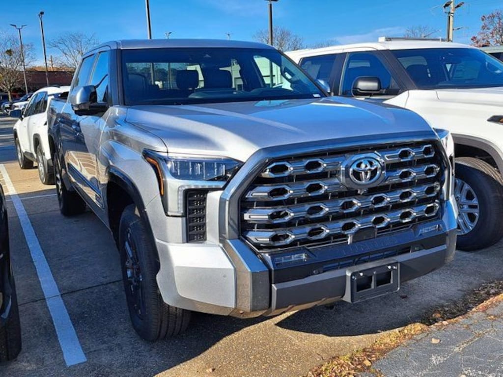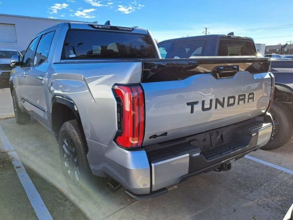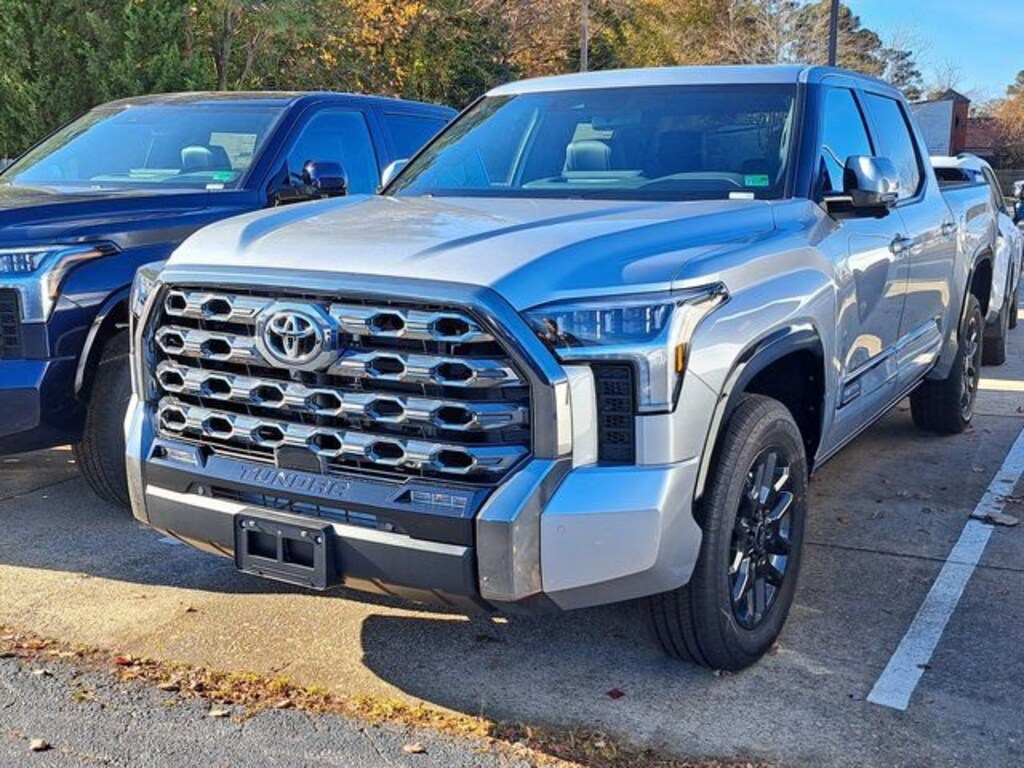 2026 Toyota Tundra Platinum Platinum 4WD, Black Leather. 3.4L V6 4WD 10-Speed Automatic Celestial Silver Dealer Discount of $1,000 off MSRP 4WD, Black Leather, 10-Way Power Adjustable Heated and Ventilated Front Seats, 12 Speakers, 3.31 Axle Ratio, 4-Wheel Disc Brakes, ABS brakes, Air Conditioning, All Weather Floor Liners, Alloy wheels, AM/FM radio: SiriusXM, Apple CarPlay/Android Auto, Auto High-beam Headlights, Auto-dimming door mirrors, Auto-dimming Rear-View mirror, Automatic temperature control, Brake assist, Bumpers: body-color, Compass, Delay-off headlights, Driver door bin, Driver vanity mirror, Dual front impact airbags, Dual front side impact airbags, Electronic Stability Control, Emergency communication system: Safety Connect (up to 10-year trial subscription), Exterior Parking Camera Rear, Front anti-roll bar, Front Bucket Seats, Front Center Armrest, Front dual zone A/C, Front fog lights, Front reading lights, Front wheel independent suspension, Fully automatic headlights, Garage door transmitter: HomeLink, Head Up Display (HUD), Heated door mirrors, Heated front seats, Heated rear seats, Heated steering wheel, Illuminated entry, Knee airbag, Leather Shift Knob, Leather steering wheel, Low tire pressure warning, Memory seat, Navigation system: Drive Connect Cloud Navigation (1-year trial subscription), Occupant sensing airbag, Outside temperature display, Overhead airbag, Overhead console, Panic alarm, Passenger door bin, Passenger vanity mirror, Power door mirrors, Power driver seat, Power moonroof, Power passenger seat, Power Running Boards, Power steering, Power windows, Premium Leather Seat Trim, Radio data system, Radio: Premium Audio, Rain sensing wipers, Rear reading lights, Rear seat center armrest, Rear step bumper, Rear window defroster, Remote keyless entry, Safety Connect, Security system, Speed control, Speed-sensing steering, Speed-Sensitive Wipers, Split folding rear seat, Steering wheel memory, Steering wheel mounted audio controls, Tachometer, Tailgate Insert - Black, Telescoping steering wheel, Tilt steering wheel, Traction control, Trip computer, Turn signal indicator mirrors, Variably intermittent wipers, Ventilated front seats, Ventilated rear seats, Voltmeter, and Wheels: 20" Dark Painted Alloy. *Every Internet Price includes currently applicable incentives. Some incentives may require financing through the manufacturer's finance company on approved credit. Some manufacturer incentives may not be combined with special APR. You may also qualify for additional manufacturer incentive programs (E.G., College graduate, owner loyalty, and military). See dealer for more details about these programs. Your additional costs are sales tax, tag and title fees for the state in which the vehicle will be registered, any dealer-installed options and a $995 dealer processing fee (Virginia). Prices are subject to change, and prior sales are excluded. While every reasonable effort is made to ensure the accuracy of this information, we are not responsible for any errors or omissions contained on these pages. Please verify any information in question with the dealer. Price includes: $1000 - TMS Customer Cash . Exp. 01/05/2026