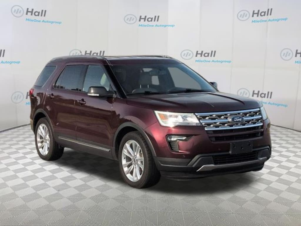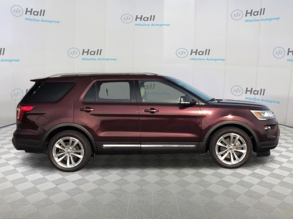 Burgundy 2018 Ford Explorer XLT FWD 6-Speed Automatic with Select-Shift 3.5L 6-Cylinder SMPI DOHC We are currently offering Vehicle Purchase Home Delivery by appointment. Please contact for details., 2 Driver Configurable 4.2" Color LCD Displays, 20" Polished Aluminum Wheels, 2nd Row Bucket Seats, 3.39 Non-Limited-Slip Axle Ratio, 3rd row seats: split-bench, 4-Wheel Disc Brakes, 6 Speakers, ABS brakes, Air Conditioning, Alloy wheels, AM/FM radio: SiriusXM, AM/FM Stereo, Auto-Dimming Rear-View Mirror, Brake assist, Bumpers: body-color, Comfort Package, Compass, Delay-off headlights, Driver Connect Package, Driver door bin, Driver vanity mirror, Dual front impact airbags, Dual front side impact airbags, Dual-Zone Electronic Automatic Temperature Ctrl, Electronic Stability Control, Emergency communication system: 911 Assist, Equipment Group 202A, Exterior Parking Camera Rear, Forward Sensing System, Four wheel independent suspension, Front anti-roll bar, Front Bucket Seats, Front Center Armrest, Front License Plate Bracket, Front reading lights, Fully automatic headlights, Heated door mirrors, Heated Steering Wheel, Illuminated entry, Knee airbag, Leather Heated Bucket Seats, Leather steering wheel, LED Fog Lamps, Low tire pressure warning, Occupant sensing airbag, Outside temperature display, Overhead airbag, Overhead console, Panic alarm, Passenger door bin, Passenger vanity mirror, Power & Heated Glass Sideview Mirrors, Power door mirrors, Power driver seat, Power Liftgate, Power passenger seat, Power steering, Power windows, Radio: AM/FM Stereo w/7 Speakers, Rear air conditioning, Rear anti-roll bar, Rear Bumper Step Pad, Rear Parking Sensors, Rear reading lights, Rear seat center armrest, Rear window defroster, Rear window wiper, Remote keyless entry, Remote Start System, Roof rack: rails only, Security system, Single-CD Player, Speed control, Speed-sensing steering, Speed-Sensitive Wipers, Split folding rear seat, Spoiler, Steering wheel mounted audio controls, SYNC Communication & Entertainment System, SYNC Connect, Tachometer, Telescoping steering wheel, Tilt steering wheel, Traction control, Trip computer, Universal Garage Door Opener (UGDO), Variably intermittent wipers, Voice-Activated Touchscreen Navigation System, Wheels: 18" 5-Spoke Sparkle Silver-Painted Alum, XLT Technology Feature Bundle.