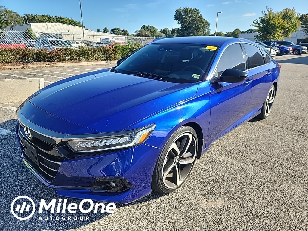 Clean CARFAX. Blue 2022 Honda Accord Sport Special Edition FWD CVT 1.5T I4 DOHC 16V Turbocharged VTEC Ebony Leather.