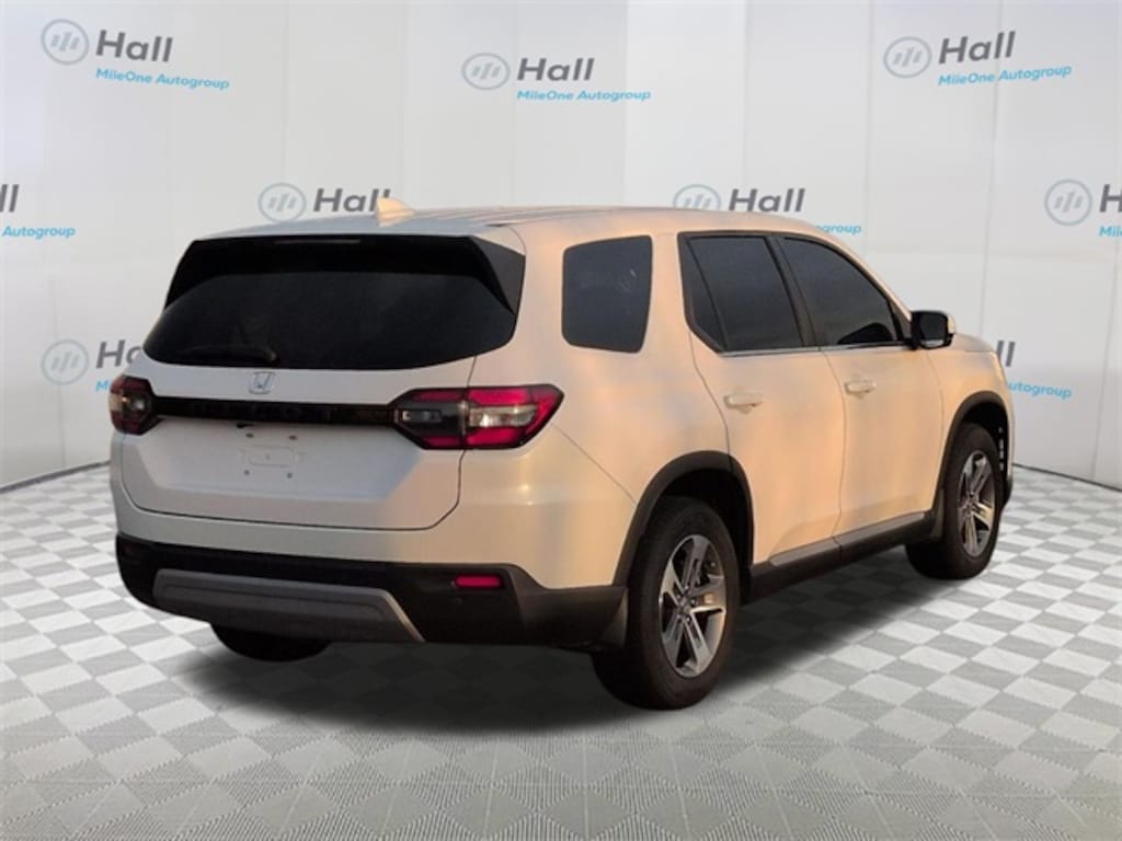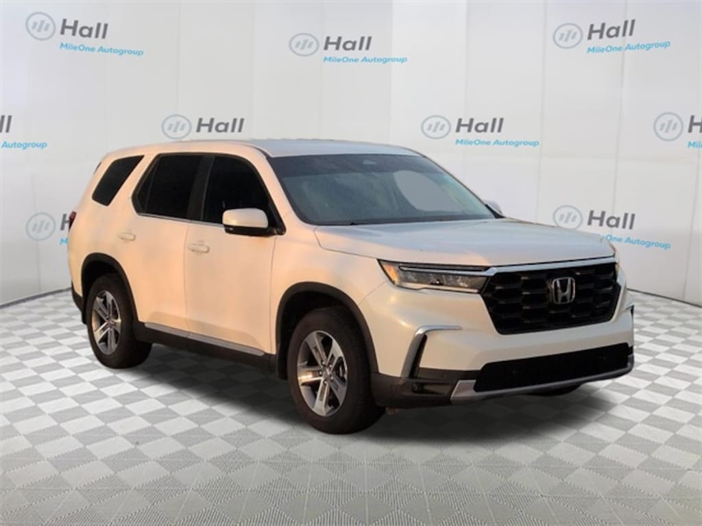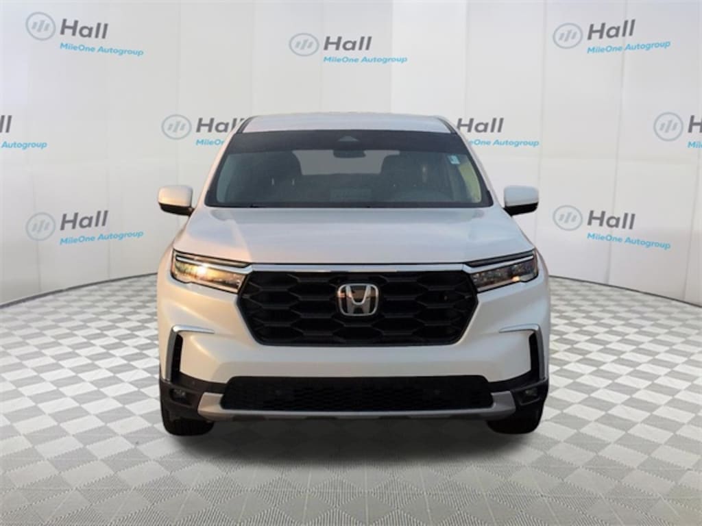Clean CARFAX. White 2025 Honda Pilot EX-L FWD 10-Speed Automatic 3.5L V6 DOHC 24V We are currently offering Vehicle Purchase Home Delivery by appointment. Please contact for details., 3rd row seats: split-bench, 4-Wheel Disc Brakes, 4.167 Axle Ratio, 9 Speakers, ABS brakes, Adaptive Cruise Control: Adaptive Cruise Control (ACC) with Low-Speed Follow, Air Conditioning, Alloy wheels, AM/FM radio: SiriusXM, Apple CarPlay/Android Auto, Auto High-beam Headlights, Auto-dimming Rear-View mirror, Automatic temperature control, Blind Spot Information (BSI) System warning, Brake assist, Bumpers: body-color, Delay-off headlights, Driver door bin, Driver vanity mirror, Dual front impact airbags, Dual front side impact airbags, Electronic Stability Control, Emergency communication system: HondaLink Assist, Exterior Parking Camera Rear, Four wheel independent suspension, Front anti-roll bar, Front Bucket Seats, Front Center Armrest, Front dual zone A/C, Front fog lights, Front reading lights, Fully automatic headlights, Garage door transmitter: HomeLink, Heated door mirrors, Heated Front Bucket Seats, Heated front seats, Illuminated entry, Knee airbag, Lane departure: Lane Keeping Assist System (LKAS) active, Leather Seat Trim, Low tire pressure warning, Memory seat, Occupant sensing airbag, Outside temperature display, Overhead airbag, Overhead console, Panic alarm, Passenger door bin, Passenger vanity mirror, Power door mirrors, Power driver seat, Power Liftgate, Power passenger seat, Power steering, Power windows, Radio data system, Radio: 245-Watt Audio System, Rear air conditioning, Rear anti-roll bar, Rear reading lights, Rear seat center armrest, Rear window defroster, Rear window wiper, Reclining 3rd row seat, Remote keyless entry, Security system, SiriusXM, Speed control, Speed-sensing steering, Speed-Sensitive Wipers, Split folding rear seat, Spoiler, Steering wheel mounted audio controls, Tachometer, Telescoping steering wheel, Tilt steering wheel, Traction control, Trip computer, Turn signal indicator mirrors, Variably intermittent wipers, Wheels: 18" Pewter Gray Machined Face.