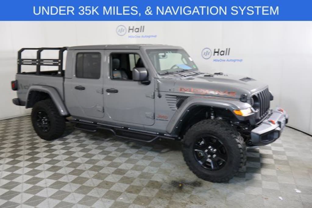 Clean CARFAX. Sting-Gray Clearcoat 2022 Jeep Gladiator Mojave 4WD 8-Speed Automatic 3.6L V6 24V VVT Gladiator Mojave, 4D Crew Cab, 3.6L V6 24V VVT, 8-Speed Automatic, 4WD, Sting-Gray Clearcoat, Black Leather, We are currently offering Vehicle Purchase Home Delivery by appointment. Please contact for details., Body Color 3-Piece Hard Top, Cold Weather Group, Freedom Panel Storage Bag, Heated Front Seats, Heated Steering Wheel, Navigation System, No Soft Top, Quick Order Package 24D, Rear Sliding Window, Rear Window Defroster.
