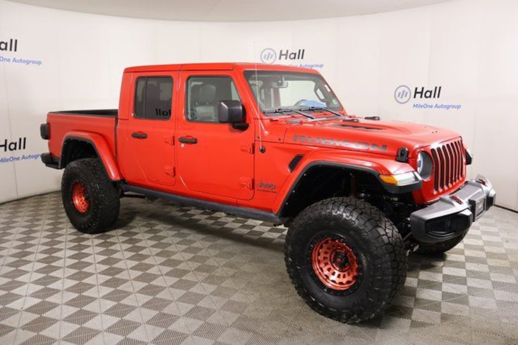 CARFAX One-Owner. Firecracker Red Clearcoat 2022 Jeep Gladiator Rubicon 4WD 8-Speed Automatic 3.6L V6 24V VVT Gladiator Rubicon, 4D Crew Cab, 3.6L V6 24V VVT, 8-Speed Automatic, 4WD, Firecracker Red Clearcoat, Black Leather, We are currently offering Vehicle Purchase Home Delivery by appointment. Please contact for details., Blind Spot & Cross Path Detection, Body Color 3-Piece Hard Top, Daytime Running Lamps LED Accents, Freedom Panel Storage Bag, Front LED Fog Lamps, LED Lighting Group, LED Park Turn Lamps, LED Premium Reflector Headlamps, LED Taillamps, Navigation System, No Soft Top, ParkSense Rear Park Assist System, Quick Order Package 24R, Rear Sliding Window, Rear Window Defroster, Safety Group.