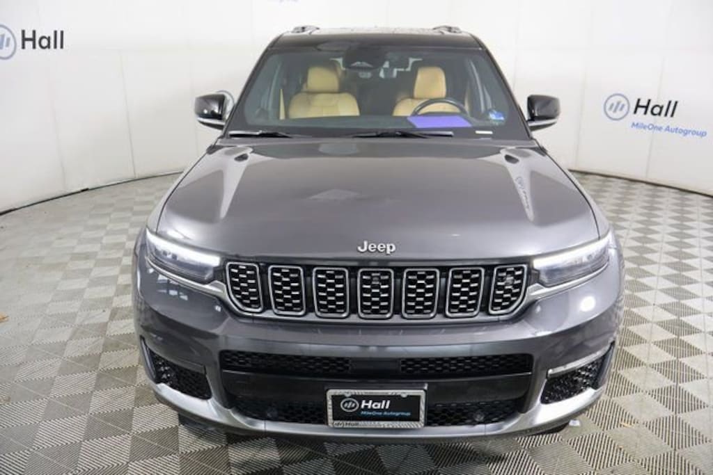 Advanced Protech Group IV (Heads-Up Display, Interior Rear Facing Camera, Night Vision/Pedestrian-Animal Detection, and Rearview Autodim Digital Display Mirror), Electronic Limited Slip Differential Delete (Conventional Differential Rear Axle), Luxury Tech Group V (2nd Row Manual Window Shades and Wireless Charging Pad), MOPAR Finishing Package (MOPAR Front Splash Guards, MOPAR Paint Protection Film, and MOPAR Rear Splash Guards w/Jeep Logo), Quick Order Package 22S, Two Tone Paint Group, 10 Speakers, 3.45 Rear Axle Ratio, 3rd row seats: split-bench, 4-Wheel Disc Brakes, ABS brakes, Active Noise Control System, Adaptive suspension, Air Conditioning, Alloy wheels, AM/FM radio: SiriusXM with 360L, Anti-whiplash front head restraints, Audio memory, Auto High-beam Headlights, Auto-dimming door mirrors, Auto-dimming Rear-View mirror, Auto-leveling suspension, Automatic temperature control, Brake assist, Bumpers: body-color, Compass, Delay-off headlights, Driver door bin, Driver vanity mirror, Dual front impact airbags, Dual front side impact airbags, Electronic Stability Control, Emergency communication system, Four wheel independent suspension, Front anti-roll bar, Front Bucket Seats, Front Center Armrest w/Storage, Front dual zone A/C, Front fog lights, Front reading lights, Fully automatic headlights, Garage door transmitter, Genuine wood dashboard insert, Genuine wood door panel insert, Heated door mirrors, Heated front seats, Heated rear seats, Heated steering wheel, Illuminated entry, Knee airbag, Leather steering wheel, Low tire pressure warning, Memory seat, Nappa Leather Seats, Navigation System, Normal Duty Suspension, Occupant sensing airbag, Outside temperature display, Overhead airbag, Overhead console, Panic alarm, Passenger door bin, Passenger vanity mirror, Power door mirrors, Power driver seat, Power Fold Seatbacks, Power Liftgate, Power moonroof, Power passenger seat, Power steering, Power windows, Radio data system, Radio: Uconnect 5 Nav w/10.1" Display, Rain sensing wipers, Rear air conditioning, Rear anti-roll bar, Rear dual zone A/C, Rear reading lights, Rear seat center armrest, Rear window defroster, Rear window wiper, Reclining 3rd row seat, Remote keyless entry, Security system, Speed control, Speed-Sensitive Wipers, Split folding rear seat, Spoiler, Steering wheel memory, Steering wheel mounted audio controls, Tachometer, Telescoping steering wheel, Tilt steering wheel, Traction control, Trip computer, Turn signal indicator mirrors, Variably intermittent wipers, Ventilated front seats, Voltmeter, and Wheels: 20" x 8.5" Fully Painted Aluminum Silver. Recent Arrival! Odometer is 22077 miles below market average!