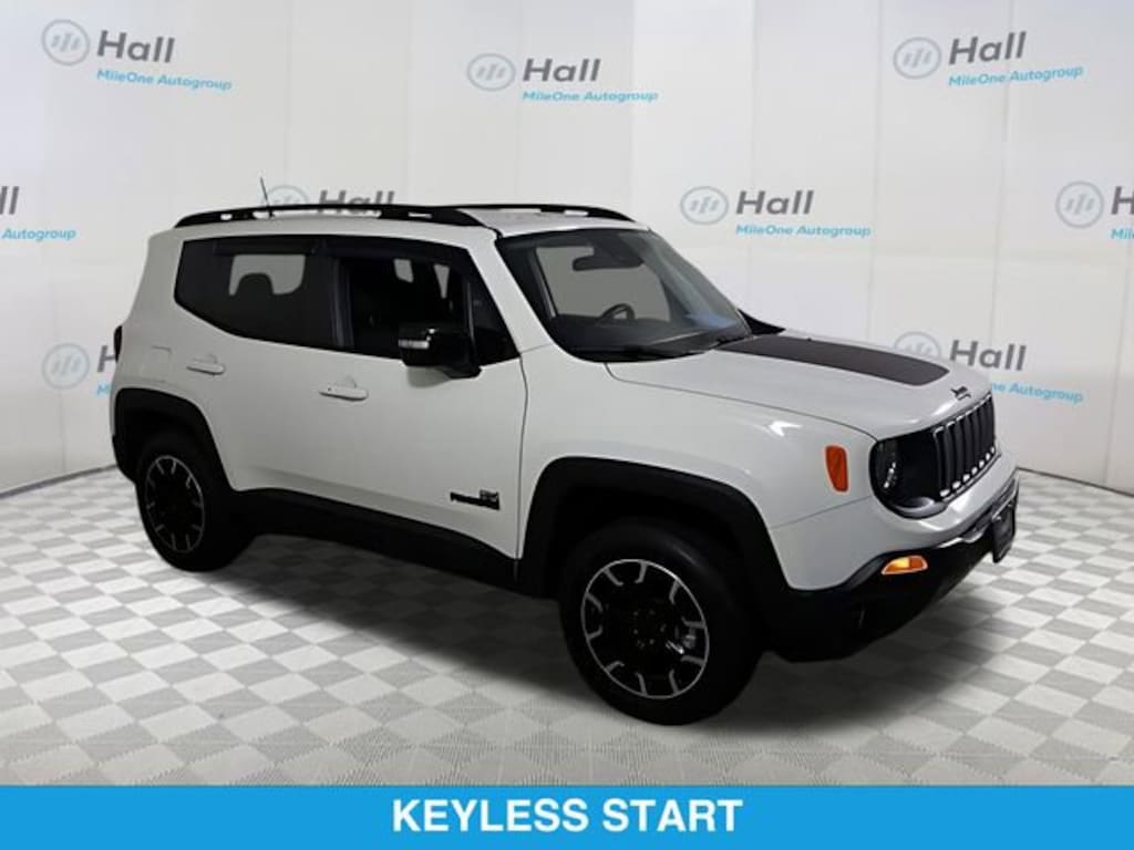 Alpine White Clearcoat 2023 Jeep Renegade Latitude 4WD 9-Speed 948TE Automatic 1.3L I4 ABS brakes, Alloy wheels, Compass, Electronic Stability Control, Front dual zone A/C, Heated door mirrors, Illuminated entry, Low tire pressure warning, Navigation System, ParkView Rear Back-Up Camera, Remote keyless entry, Traction control.