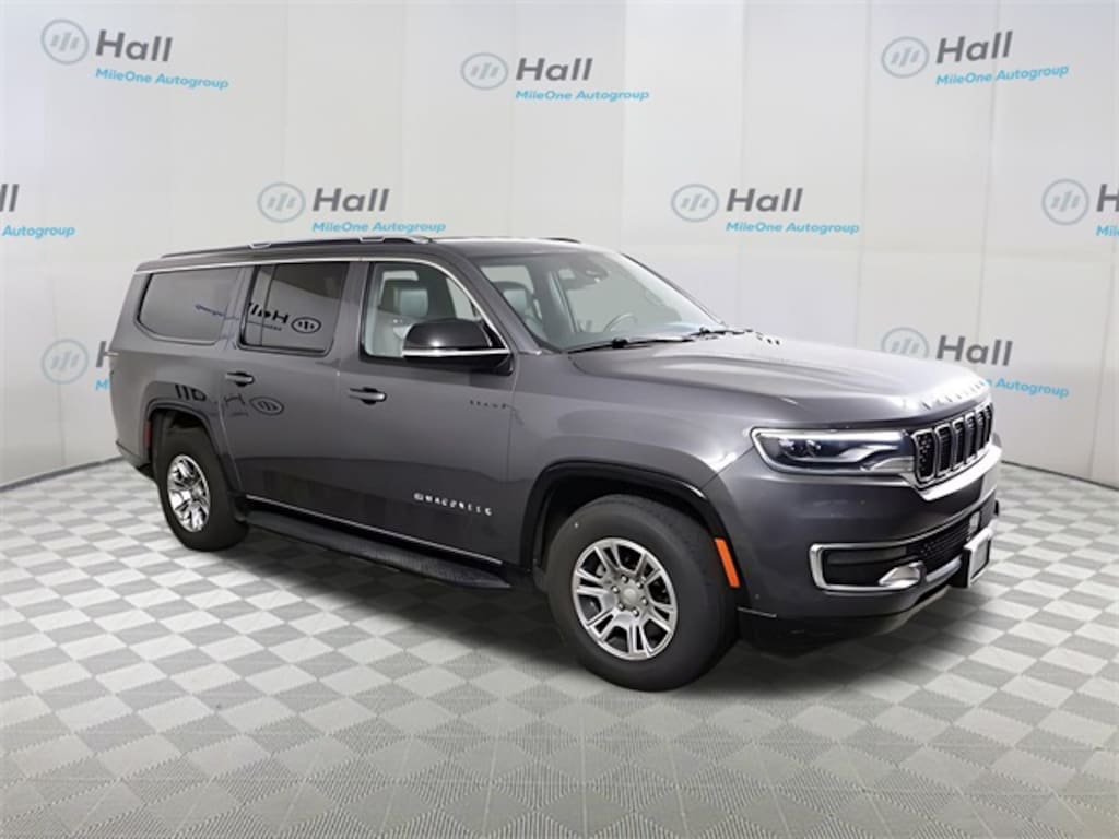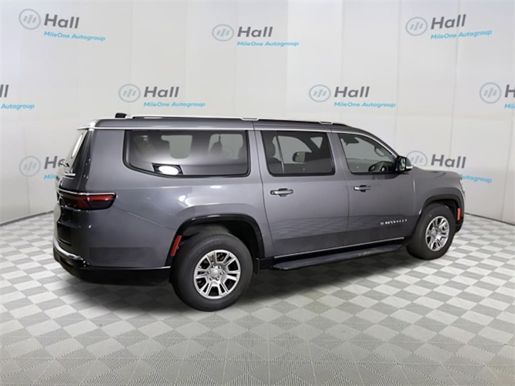 CARFAX One-Owner. Baltic Gray Metallic Clearcoat 2024 Jeep Wagoneer L 4WD 8-Speed Automatic 3.0L I6 We are currently offering Vehicle Purchase Home Delivery by appointment. Please contact for details., 10 Speakers, 3.55 Rear Axle Ratio, 3rd row seats: bench, 4-Wheel Disc Brakes, ABS brakes, Adjustable pedals, Air Conditioning, Alloy wheels, AM/FM radio: SiriusXM with 360L, Anti-whiplash front head restraints, Apple CarPlay/Android Auto, Audio memory, Auto-dimming door mirrors, Auto-dimming Rear-View mirror, Auto-leveling suspension, Automatic temperature control, Brake assist, Bumpers: body-color, Compass, Delay-off headlights, Driver door bin, Driver vanity mirror, Driver's Seat Mounted Armrest, Dual front impact airbags, Dual front side impact airbags, Electronic Stability Control, Emergency communication system: Wagoneer Connect, Exterior Parking Camera Rear, Four wheel independent suspension, Front anti-roll bar, Front Bucket Seats, Front Center Armrest w/Storage, Front dual zone A/C, Front fog lights, Front reading lights, Fully automatic headlights, Garage door transmitter, Heated door mirrors, Heated front seats, Heated steering wheel, Illuminated entry, Knee airbag, Leather Trimmed Bucket Seats, Low tire pressure warning, Memory seat, Navigation System, Normal Duty Suspension, Occupant sensing airbag, Outside temperature display, Overhead airbag, Overhead console, Panic alarm, Passenger door bin, Passenger seat mounted armrest, Passenger vanity mirror, Pedal memory, Power adjustable front head restraints, Power door mirrors, Power driver seat, Power Liftgate, Power passenger seat, Power steering, Power windows, Quick Order Package 25E, Radio data system, Radio: Uconnect 5 Nav w/10.1" Display, Rear air conditioning, Rear anti-roll bar, Rear reading lights, Rear seat center armrest, Rear window defroster, Rear window wiper, Reclining 3rd row seat, Remote keyless entry, Security system, Speed control, Speed-sensing steering, Speed-Sensitive Wipers, Split folding rear seat, Steering wheel memory, Steering wheel mounted audio controls, Tachometer, Telescoping steering wheel, Tilt steering wheel, Traction control, Trip computer, Turn signal indicator mirrors, Variably intermittent wipers, Ventilated front seats, Voltmeter, Wheels: 18" x 8.0" Aluminum Base Finish.