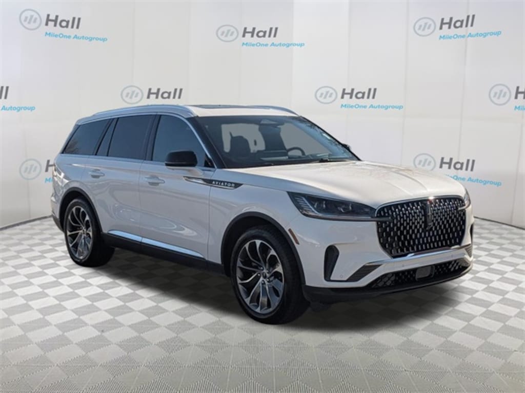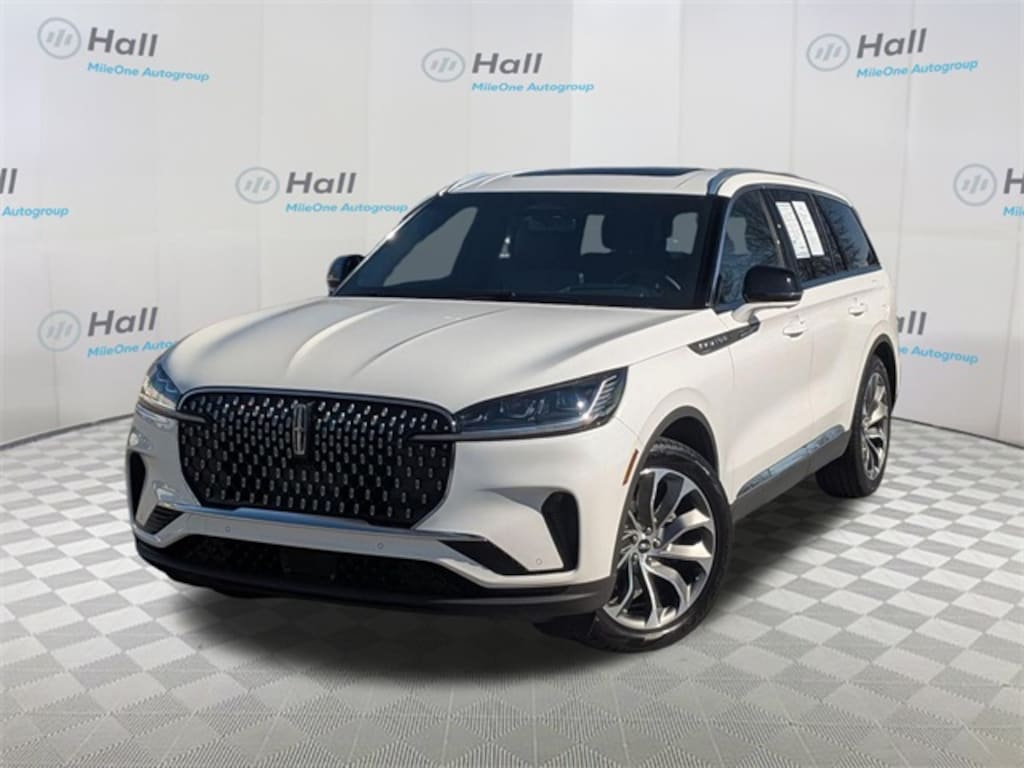 Clean CARFAX. White Metallic 2025 Lincoln Aviator Reserve RWD 10-Speed Automatic 3.0L V6 We are currently offering Vehicle Purchase Home Delivery by appointment. Please contact for details., 14 Speakers, 30-Way Perfect Position Seats w/Active Motion, 3rd row seats: split-bench, 4-Wheel Disc Brakes, 40/Mini Console/40 Dual Captain's Chairs, ABS brakes, Adaptive Dynamic Bending Lighting, Adaptive Pixel LED Headlamps, Adaptive suspension, Advanced Heads-Up Display, Air Conditioning, Alloy wheels, AM/FM radio: SiriusXM, Apple CarPlay/Android Auto, Audio memory, Auto Air Refresh, Auto High-beam Headlights, Auto-dimming door mirrors, Auto-dimming Rear-View mirror, Automatic temperature control, Brake assist, Bumpers: body-color, Compass, Delay-off headlights, Driver door bin, Driver vanity mirror, Dual front impact airbags, Dual front side impact airbags, Electronic Stability Control, Emergency communication system: 911 Assist, Equipment Group 200A, Four wheel independent suspension, Front anti-roll bar, Front Bucket Seats, Front Center Armrest, Front dual zone A/C, Front reading lights, Full Rear Console, Fully automatic headlights, Garage door transmitter, Genuine wood console insert, Genuine wood dashboard insert, Heads-Up Display, Heated & Ventilated Rear Seats, Heated door mirrors, Heated front seats, Heated steering wheel, HVAC memory, Illuminated entry, Illuminated Lincoln Star in Grille, Illumination Package, Knee airbag, Leather steering wheel, Lincoln BlueCruise Equipped (4-Years Included), Lincoln Digital Experience, Lincoln Dynamic Signature Lighting, Low tire pressure warning, Luxury Package, Memory seat, Navigation system: Connected Navigation (1-year trial), Occupant sensing airbag, Outside temperature display, Overhead airbag, Overhead console, Panic alarm, Passenger door bin, Passenger vanity mirror, Power door mirrors, Power driver seat, Power Liftgate, Power moonroof: Panoramic Vista Roof, Power passenger seat, Power steering, Power windows, Premium Lthr Heated/Ventilated Fnt Captain's Chairs, Radio data system, Radio: Revel Audio System w/14 Speakers, Radio: Revel Ultima 3D Audio System w/28 Speakers, Rain sensing wipers, Rear air conditioning, Rear anti-roll bar, Rear audio controls, Rear dual zone A/C, Rear reading lights, Rear window defroster, Rear window wiper, Remote keyless entry, Security system, SiriusXM, Speed control, Speed Dependent Lighting, Speed-Sensitive Wipers, Split folding rear seat, Spoiler, Steering wheel memory, Steering wheel mounted A/C controls, Steering wheel mounted audio controls, Tachometer, Telescoping steering wheel, Tilt steering wheel, Traction control, Trip computer, Turn signal indicator mirrors, Variably intermittent wipers, Ventilated front seats, Wheels: 21" Bright-Machined Aluminum, Wireless Charging Pad.