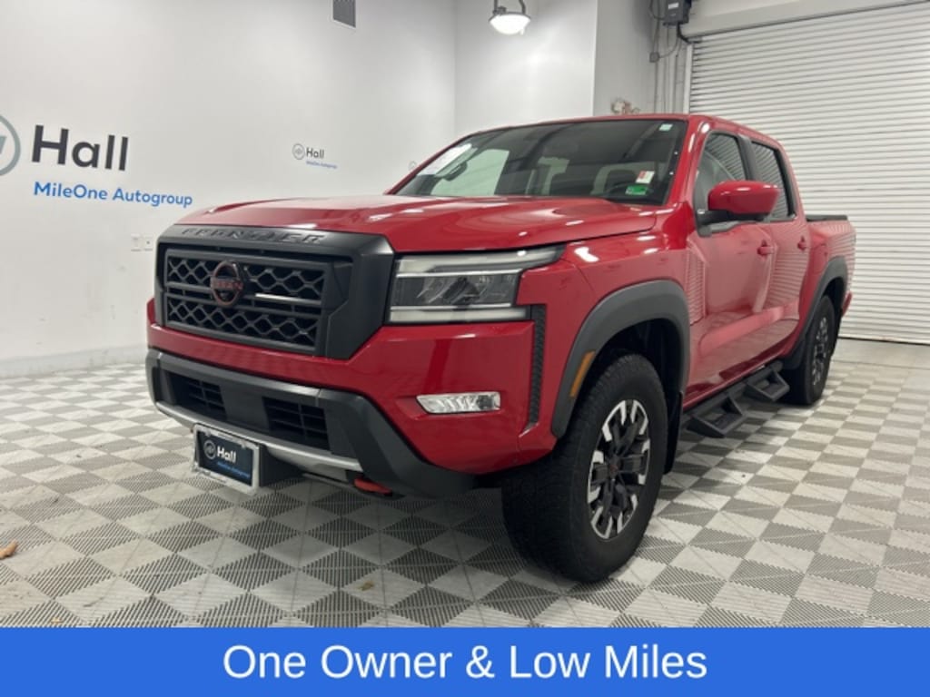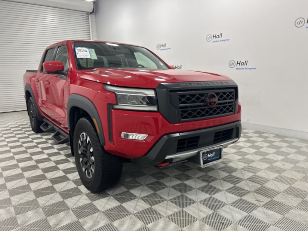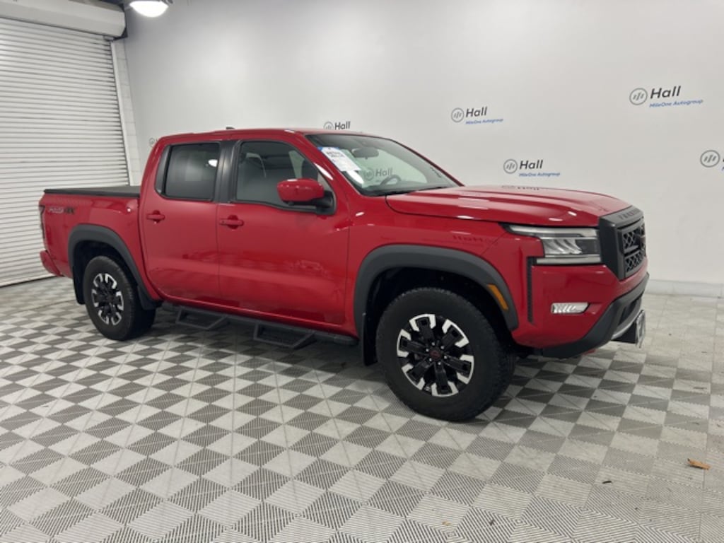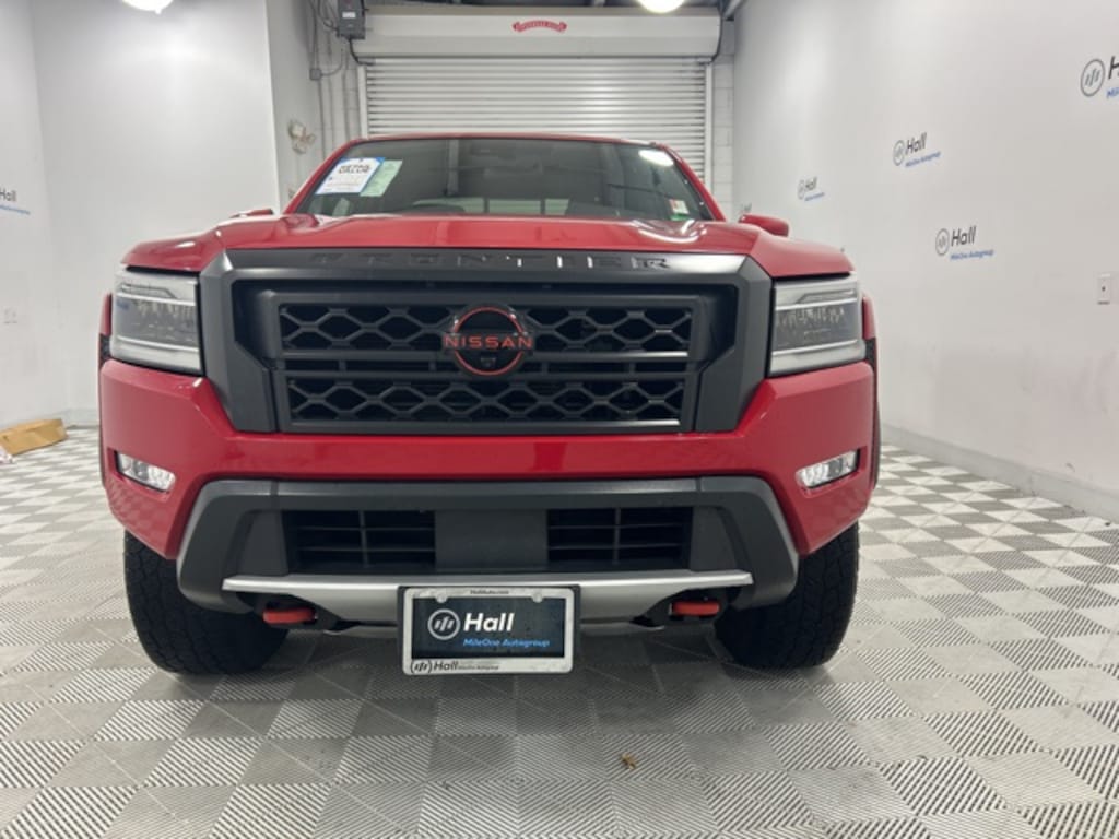 CARFAX One-Owner. Red Alert 2023 Nissan Frontier PRO-4X 4WD 9-Speed Automatic 3.8L DI DOHC 24V V6 We are currently offering Vehicle Purchase Home Delivery by appointment. Please contact for details., 4WD, 120V Power Outlet in Bed, 120V Power Outlet in Rear Center Console, 3.692 Axle Ratio, 4-Wheel Disc Brakes, ABS brakes, Air Conditioning, Alloy wheels, AM/FM radio: SiriusXM, Automatic temperature control, Bed Under-Rail Lighting, Brake assist, Bumpers: body-color, Driver door bin, Electronic Stability Control, Front Bucket Seats, Front reading lights, Front wheel independent suspension, Heated Front Seats, Heated Outside Mirrors, Heated Steering Wheel, Intelligent Around View Monitor (I-AVM), Leather Shift Knob, Navigation system: Nissan Navigation with Voice Recognition, Off-Road Protection Package, Off-Road Style Step Rails, Power door mirrors, Power driver seat, Power windows, PRO Convenience Package, PRO Embroidered Premium Cloth Seat Trim, PRO-4X Mud Flaps, Rear step bumper, Remote Engine Starter, Speed control, Spray-In Bedliner, Tow Package: Hitch, Tow Harness, Trailer Hitch w/Wiring Harness, Utili-Track System, Variably intermittent wipers, Wireless Charging For Personal Devices.