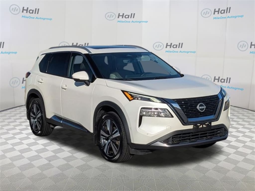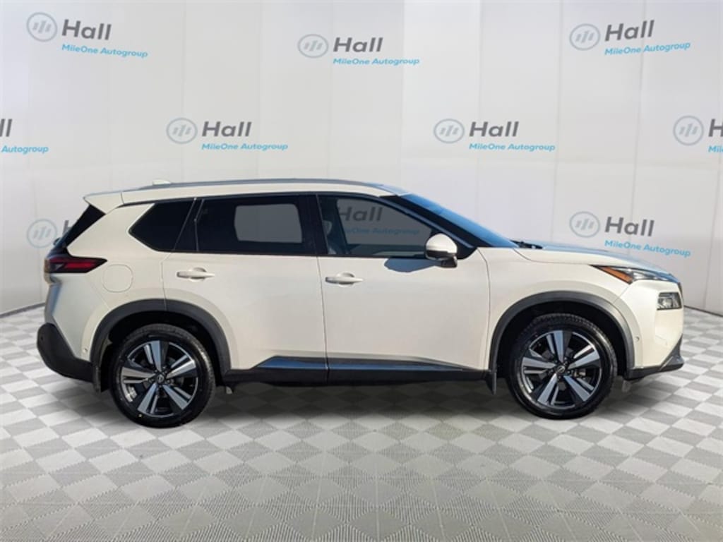 Pearl White Tricoat 2023 Nissan Rogue SL AWD CVT with Xtronic 1.5L I3 Turbocharged DOHC 12V LEV3-ULEV50 201hp We are currently offering Vehicle Purchase Home Delivery by appointment. Please contact for details., AWD, 19" Aluminum Alloy Wheels, 4-Wheel Disc Brakes, 5.604 Axle Ratio, 6 Speakers, ABS brakes, Air Conditioning, Alloy wheels, AM/FM Radio, AM/FM radio: SiriusXM, Auto High-beam Headlights, Auto-dimming Rear-View mirror, Automatic temperature control, Black Splash Guards (Set of 4), Brake assist, Bumpers: body-color, Chrome Rear Bumper Protector, Delay-off headlights, Driver door bin, Driver vanity mirror, Dual front impact airbags, Dual front side impact airbags, Electronic Stability Control, Emergency communication system: NissanConnect Services, Floor Mats w/2-Piece Cargo Area Protector, Four wheel independent suspension, Frameless Rearview Mirror w/Universal Remote, Front anti-roll bar, Front Bucket Seats, Front Center Armrest, Front dual zone A/C, Front reading lights, Fully automatic headlights, Heated door mirrors, Heated Front Bucket Seats, Heated front seats, Heated steering wheel, Illuminated entry, Illuminated Kick Plates, Knee airbag, Leather steering wheel, Leather-Appointed Seat Trim, Low tire pressure warning, Memory seat, NissanConnect featuring Apple CarPlay and Android Auto, Occupant sensing airbag, Outside temperature display, Overhead airbag, Overhead console, Panic alarm, Passenger door bin, Passenger vanity mirror, Power door mirrors, Power driver seat, Power Liftgate, Power moonroof, Power passenger seat, Power steering, Power windows, Radio data system, Radio: AM/FM NissanConnect w/Navigation, Rear anti-roll bar, Rear Parking Sensors, Rear reading lights, Rear seat center armrest, Rear side impact airbag, Rear window defroster, Rear window wiper, Remote keyless entry, Security system, SL Premium Package, Speed control, Speed-Sensitive Wipers, Split folding rear seat, Spoiler, Steering wheel mounted audio controls, Tachometer, Telescoping steering wheel, Tilt steering wheel, Traction control, Trip computer, Turn signal indicator mirrors, Variably intermittent wipers, AWD.