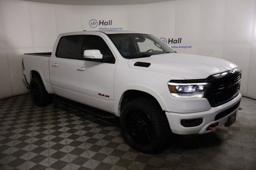 Big Horn Level 2 Equipment Group (115V Auxiliary Power Outlet, 115V Auxiliary Rear Power Outlet, 2 USB Full Function/Charge Only Media Hub, 2nd Row In Floor Storage Bins, 400W Inverter, Air Conditioning ATC w/Dual Zone Control, Auto-Dimming Rear-View Mirror, Big Horn IP Badge, Black Premium Power Mirrors, Class IV Receiver Hitch, Dampened Tailgate, Foam Bottle Insert (Door Trim Panel), Glove Box Lamp, Heated Front Seats, Heated Steering Wheel, ParkSense Front/Rear Park Assist w/Stop, Power 4-Way Driver Lumbar Adjust, Power 8-Way Driver Seat, Power Adjustable Pedals, Radio: Uconnect 4 w/8.4" Display, Rear Dome w/On/Off Switch Lamp, Rear Power Sliding Window, Rear Window Defroster, Security Alarm, SiriusXM Satellite Radio, Sun Visors w/Illuminated Vanity Mirrors, and Universal Garage Door Opener), Night Edition (3 Rear Seat Head Restraints, 4 Way Front Headrests, Anti-Spin Differential Rear Axle, Auto-Dimming Exterior Driver Mirror, Black Exterior Truck Badging, Black Headlamp Bezels, Black Interior Accents, Body Color Door Handles, Body Color Exterior Mirrors, Body Color Front Bumper, Body Color Premium Power Mirrors, Body Color Rear Bumper w/Step Pads, Bucket Seats, Deluxe Cloth Bucket Seats, Dual Exhaust w/Black Tips, Exterior Mirrors Courtesy Lamps, Exterior Mirrors w/Memory, Front Seat Back Map Pockets, Full Length Floor Console, Grille Surround 1 Black Texture 2 Black, Manual Adjust 4-Way Front Passenger Seat, Power-Folding Mirrors, Rear 60/40 Folding Seat, and Wheels: 20" x 9.0" Premium Paint/Polished), Premium Lighting Group (Front LED Fog Lamps, LED Reflector Headlamps, and LED Taillamps), Quick Order Package 23Z Big Horn (Big Horn Badge), 3.21 Rear Axle Ratio, 4-Wheel Disc Brakes, 48V Belt Starter Generator, 6 Speakers, ABS brakes, Air Conditioning, Alloy wheels, AM/FM radio, Brake assist, Bumpers: chrome, Cloth Bench Seat, Compass, Delay-off headlights, Dome Dual LED Reading Lamp, Driver door bin, Dual front impact airbags, Dual front side impact airbags, Dual-Pane Panoramic Sunroof, Electronic Stability Control, Front anti-roll bar, Front Center Armrest w/Storage, Front fog lights, Front reading lights, Front wheel independent suspension, Fully automatic headlights, GPS Antenna Input, Heated door mirrors, Illuminated entry, Leather steering wheel, Low tire pressure warning, Manufacturer's Statement of Origin, Occupant sensing airbag, Outside temperature display, Overhead airbag, Overhead console, Overhead LED Lamps, Panic alarm, ParkView Rear Back-Up Camera, Passenger door bin, Passenger vanity mirror, Power door mirrors, Power steering, Power windows, Premium Overhead Console, Radio data system, Radio: Uconnect 3 w/5" Display, Rear anti-roll bar, Rear seat center armrest, Rear step bumper, Remote keyless entry, Remote Start System, Speed control, Split folding rear seat, Steering wheel mounted audio controls, Tachometer, Telescoping steering wheel, Tilt steering wheel, Traction control, Trip computer, Variably intermittent wipers, Voltmeter, and Wheels: 18" x 8" Cast-Aluminum Painted. Recent Arrival!